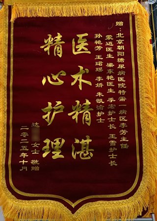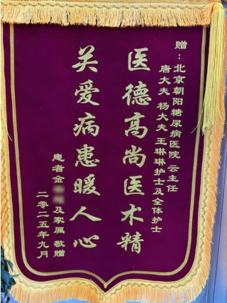 2025年第四季度,北京朝阳糖尿病医院收到锦旗10面,患者感谢信数百封